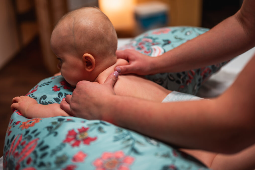 Jemná masáž vhodná pro děti od období, kdy samostatně drží hlavičku. Pomáhá při plynatosti, zklidňuje neklidné děti a podporuje kvalitní spánek.